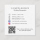 Back: Templates for your name, title, phone number, mail and website address, QR-code to your website. Facebook and Instagram icons.