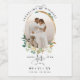 Announce your wedding date in style. Your guests will love the announcement and appreciate the nice gift! Whether you add label to a wine bottle or any other jar, bottle, box or anything else you like, is up to you, wine bottle is simply an example. Design with elegant oval arch photo overlay frame with your names. Attractive arch watercolor floral details in white, gold and honey mustard hues. Modern hand written calligraphy details.