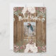 Wood fence. Watercolor White Floral & Pine Cone Bridal shower invitation. Cream background. Information on the back. Bride photo. Rounded corners.