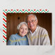 Wish your loved ones Merry Christmas, Happy Holidays, or Season's Greetings in elegant simplicity with this photo card featuring your choice of holiday greeting written in a slanted script above your signature. Just upload your photo, type in your preferred message and your family name, and you're done! The back features a festive pattern of red, white, and green zig-zag stripes reminiscent of the candy canes so abundant during this time of year. So what are you waiting for? Personalise and order your card today and cross one more thing off your holiday to-do list.