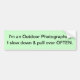 A green bumper sticker, with the phrase: "I am an outdoor Photographer, I slow down & pull over OFTEN".