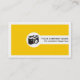 Photographer feminine business cards-yellow, featuring a camera in the front and your initials/monogram on the back along a QR code for more info.