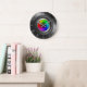 © Sunny Mars Designs - Colour Wheel Camera Lens Large Round Roman Numerals Wall Clock – This colourful, fully customisable photography clock features an illustration of a camera lens with a colourful colour wheel as the diaphragm shutter. Perfect for a professional photographers.