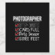 Funny Photographer-Life quote. Creative checklist humour for how we feel at end of day: Card Full, Battery Exhausted, Dirty Sensor and Sore Feet. > Cute appreciation idea for a professional instructor, amateur, or beginner photographer. > Customisable: Add your own custom name or text.