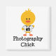 A cute chick in a tee wears a camera around her neck with a blue and brown flower patterned neck strap on photography t-shirts, tees, mugs, totes and more apparel and gifts for the female photographer. Click on the following link to see all of our cute and original Chrissy H. Artwork © Chrissy H. Studios, LLC. All Rights Reserved.