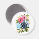 Vintage style retro camera and pink flowers photography lovers magnet. Pretty watercolor illustration of a vintage camera and flowers.