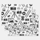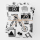 B&W pattern design featuring photography accessories illustrations including cameras, films and tripods.