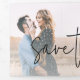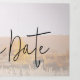 Capture the essence of your love story with our exquisite Custom Photo Wedding Save the Date Card featuring elegant script typography. This timeless and personalised design serves as the perfect prelude to your special day, allowing you to share a glimpse of your joy with loved ones. This save the date features a horizontal photo and script greeting which spans the entire background, outside of this tri-fold card.