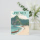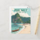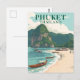 Escape to the stunning beaches of Phuket, Thailand, with this vintage-style illustration postcard. Featuring long-tail boats, palm trees, and a serene sunset over stunning waters, this collectable postcard evokes the timeless beauty of Thailand's tropical location