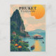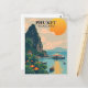 Escape to the stunning beaches of Phuket, Thailand, with this vintage-style illustration postcard. Featuring long-tail boats, palm trees, and boat, this collectable postcard evokes the timeless beauty of Thailand's tropical location