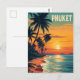 This beautiful vintage poster showcases the tropical allure of Phuket at sunset. Silhouetted palm trees stretch over a golden beach as the sky glows in warm retro tones of orange and pink. The nostalgic texture and vintage colour palette capture the essence of a peaceful Thai paradise, perfect for evoking the spirit of mid-century travel and exotic relaxation.