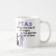 This mug has a novelty design of text and a picture of a physical therapist assistant and a patient in a wheelchair.