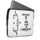 Showcase your wry suggestive physics attitude with this neoprene laptop sleeve featuring the parameters of Ohm's law, including V (voltage), I (current), and R (resistance). Comes with the saying that will make others do a double-take on what physicists do: "Physicists Do It With A Lot Of Conductivity". Electromagnetic attitude laptop sleeve for all who think about voltage, current, and resistance!