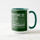 Physics Mug. With the following words at the back - Physics, Acceleration, Mass, Particles, Thermodynamics, gravity, hawking, big bang, black holes, electromagnetic, maxwell, quantum mechanics, strings, radiation, tesla, force, e=mc2, gas, atom, proton, nuclear, hertz, radiation, gamma , absolute 0, nanotech, orbit, frequency, weight