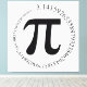 This design features the pi symbol (π) with the first 62 digits of pi in a circle around the symbol.