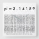 pi= 3.14159 Black White Math Science pi Day Digits Square Wall Clock