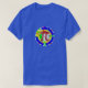 T-shirt with my original design of a red pi symbol surrounded by colourful circles and splatters of paint.