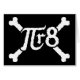 Pi x the radius to the 8th power = pirate! Humourous pirate emblem with the algebraic formula & crossbones, in worn scallywag printing. T-shirts, cards, gifts.