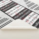 A fun music themed design the keyboard and piano lover with curved piano keyboards on the left and right, and a music score design in the middle in black and white with red music notes semi transparent
