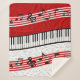 A fun music themed design for the keyboard and piano lover with curved piano keyboard and a music score design in red white and black with light grey music notes background