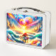 This is a standard metal lunchbox that appears to work just fine. We designed this box ourselves with an uploaded photo and custom text on the front and back. It looks absolutely beautiful except the front of the lunchbox is not centered like it shows in the photo. The print borders don't align with the inset flat part of the box where the preview photo online showed it perfectly centered in there. The back looks nice and centered though.