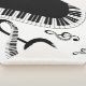con fondo blanco y negro y teclas de piano con notas musicales también con teclas de piano.