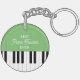 Grand piano keys Christmas keychain for a piano player, pianist, student, teacher, musician, instructor, kids, friends, etc. A black and white piano key with a cute jingle bell on a green backdrop, modern typography "Best Piano Teacher Ever". Elegant personalised winter Holiday decoration gift idea for him or her. Cute Christmas accessories for friends and family.