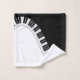 A curving black and white piano keyboard divides black from white in this whimsical graphic design that is sure to delight the musician.