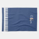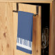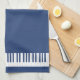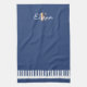 A stylish kitchen towel in dark blue, with a blue and white piano keyboard along one edge. Personalise with the recipient's initial, in light orange, with their name in white script typography. The monogrammed tea towel makes an ideal novelty gift for pianists, music teachers and fellow musicians.