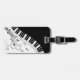 Classic black and white keyboard with a curved flair. Added music notes add a festive look.