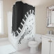 Classic black and white keyboard with a curved flair. Added music notes add a festive look.