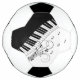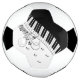 Classic black and white keyboard with a curved flair. Added music notes add a festive look.