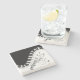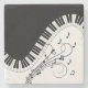 Classic black and white keyboard with a curved flair. Added music notes add a festive look.