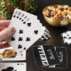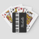 Musical playing cards, with a piano keyboard on a black background. White script lettering can be personalised with your own information, a cute musical gift or a game you can enjoy!