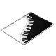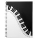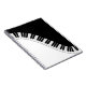 A curving black and white piano keyboard divides black from white in this whimsical graphic design that is sure to delight the musician.