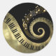 Unusual musical design featuring swirling piano keys with gold musical notes flowing from the centre of the keys. This design would make the perfect gift for the piano lover and is available on a collection of gifts and paper products. sgb01
