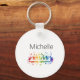 Grand piano keys keychain for kids, pianist or teacher. Cute round personalised key chain with elegant name monogram. Monogrammed accessory for men women and kids. Classical instrument keyboard design for piano instructor, music lessons etc. Fun black and white monogrammed party favour.