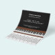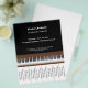 A black flyer with tear off strips and an illustration of a piano and its black and white keys and a wooden surround. Perfect for activities such as piano lessons or teacher!