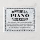 Official Piano License. There are many activities involving various equipment, such as operating an automobile, aeroplane, etc., that require specialised training and licenses. Making music is something that usually requires training: lessons, practice, and rehearsals. Shouldn't it be required of the prospective musicians that they receive a license to operate the equipment, i.e., their musical instrument?