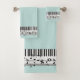 Black and White Piano Music Design Bath Towel Set with customisable background colour.