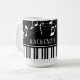Modern, stylish mug with piano keyboard and music notes in black and white personalised with a name or your custom text in an editable font style. Ideal for music teachers, musicians and music professionals. CHANGES: You can change the black background colour or the text font style, colour, size and placement by clicking on CUSTOMIZE FURTHER for a custom look or simply delete the sample name to leave that area blank. Contact the designer BEFORE ORDERING via Zazzle Chat or makeitaboutyoustore@gmail.com for design modifications, assistance with personalising or transferring the design to another product or would like coordinating items.