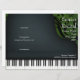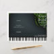 This is an elegant folded recital or concert program template featuring a stylised piano illustration on a background of clefs and music symbols.