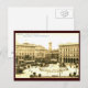 A reproduction of a vintage post card shows the Piazza del Duomo, Monumento a Vittorio Emanuele II, Milan, Italy Vintage.