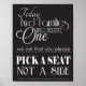 Pick a Seat Not a Side, No Sides Wedding Sign