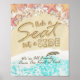 Pick A Seat Not A Side Wedding Sign Poster - Summer Sandy Beach Write in Sand Text with Starfish and Seashell.
