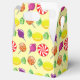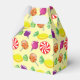 Bright and colourful candy and lollipop patterned favour boxes.