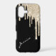 This glamourous phone case has a top that is frosted with silver faux glitter drips. We think it looks fabulous on black, but you can pick your own background colour by choosing "Edit Design". Your name is in white script diagonally across the bottom. Pretty!