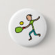 Pickleball design features expert player at full stretch with pickle ball and bat.