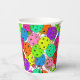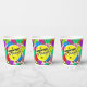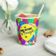 Festive personalised birthday paper cups for a pickleball player with colourful confetti and pickleball balloons on a white background. Blue, red, bright green, yellow, hot pink, and lavender balloons made from pickleball balls. Personalise as you wish for your favourite pickleballer. Colourful pickleball-themed birthday party cups for your pickleball-loving mum, dad, uncle, aunt, brother, sister, neighbour, grandpa, grandma, husband, wife, friend, or work colleague who won't stop talking about pickleball. Yellow Pickleball with pickleballer's name to personalise.
