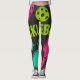 Pickleball Bright PINK BLUE GREEN PADDLE Art Leggings